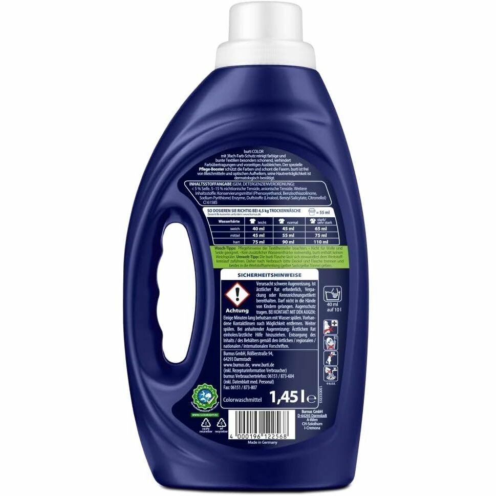 Жидкость для стирки Burti Color для стирки цветного белья, 1.45 л, бутылка