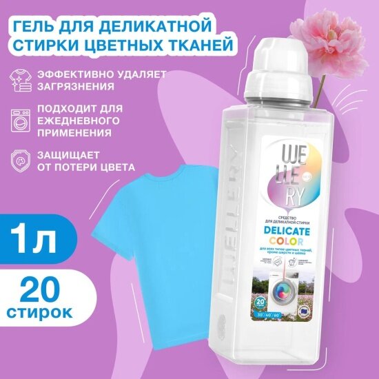 СохранитьСредство для стирки цветных вещей Wellery Delicate Color 1 л, ПЭТ интересное: