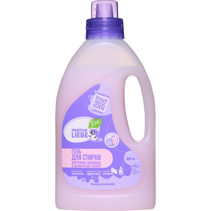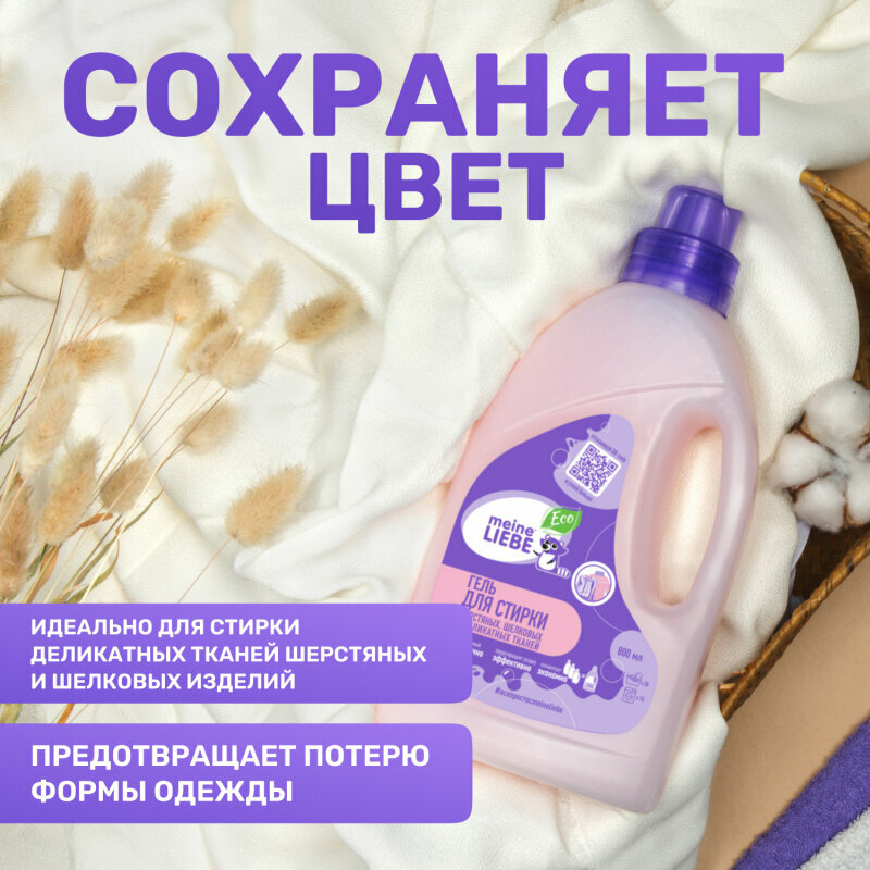MEINE LIEBE Гель-концентрат для стирки шерстяных, шелковых и деликатных тканей ЭКО без фосфатов, хлора и энзимов,Биоразлагаемый 800 мл ML31104
