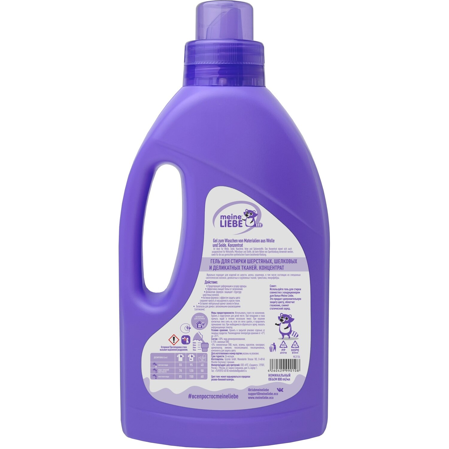 MEINE LIEBE Гель для стирки шерстяных, шелковых и деликатных тканей 800 мл