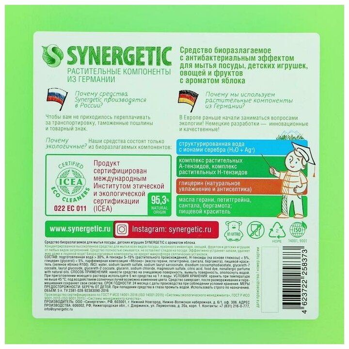 Концентрированное средство для мытья посуды и фруктов SYNERGETIC 4623722258373
