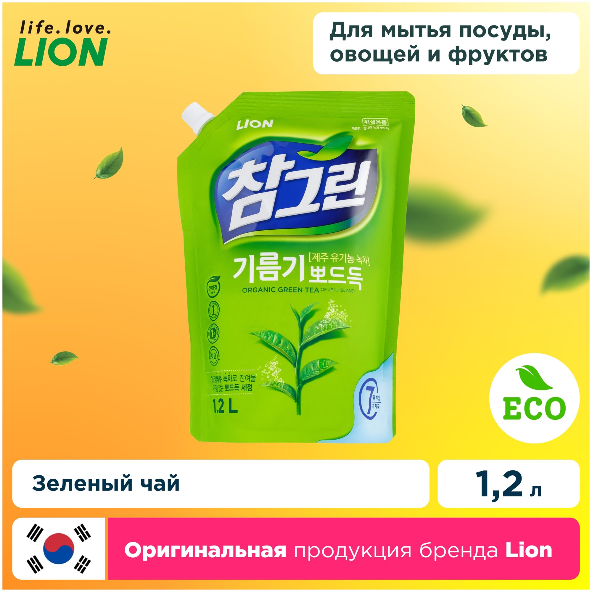 Lion Chamgreen Средство для мытья посуды, овощей и фруктов Зеленый чай 1,2 л в мягкой упаковке