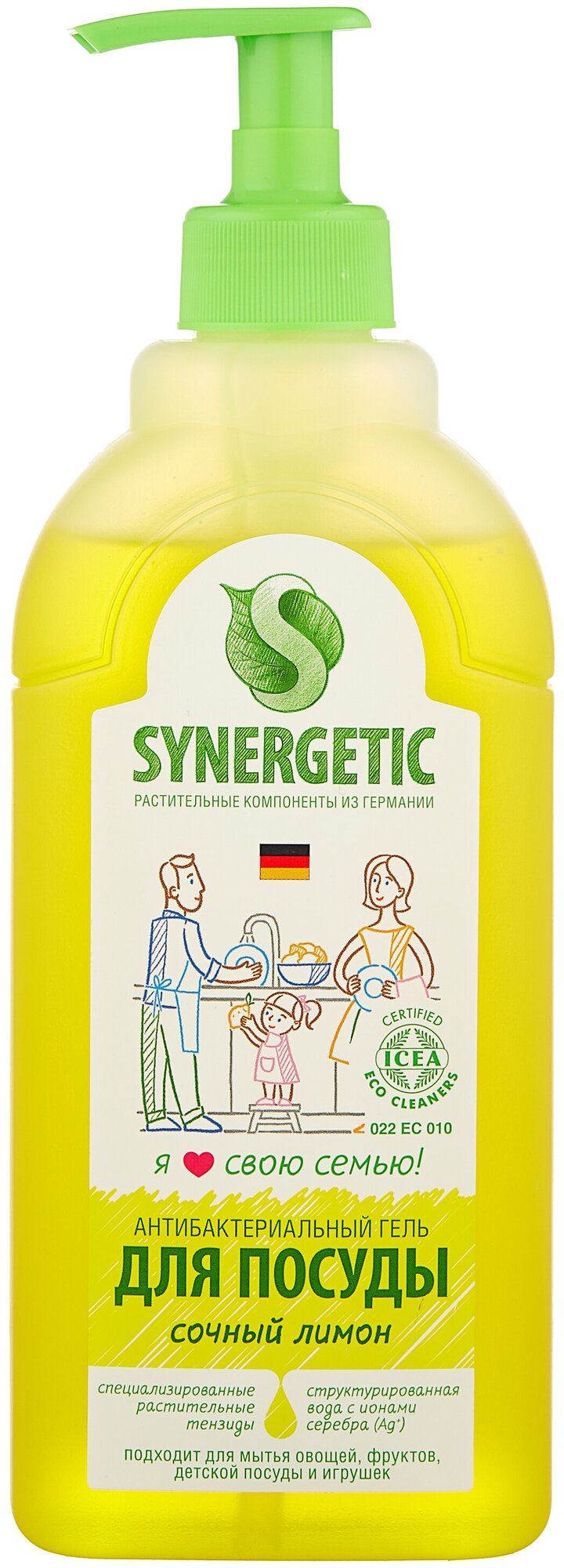 Гель для мытья посуды антибактериальный 500 мл, SYNERGETIC "Лимон", 103051 В комплекте: 1шт.