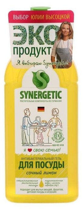 Гель для мытья посуды Synergetic "Сочный лимон", антибактериальный, 1 л