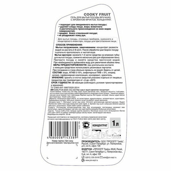 Купить Средство для мытья посуды Prosept Cooky Fruits, концентрат, 1 л