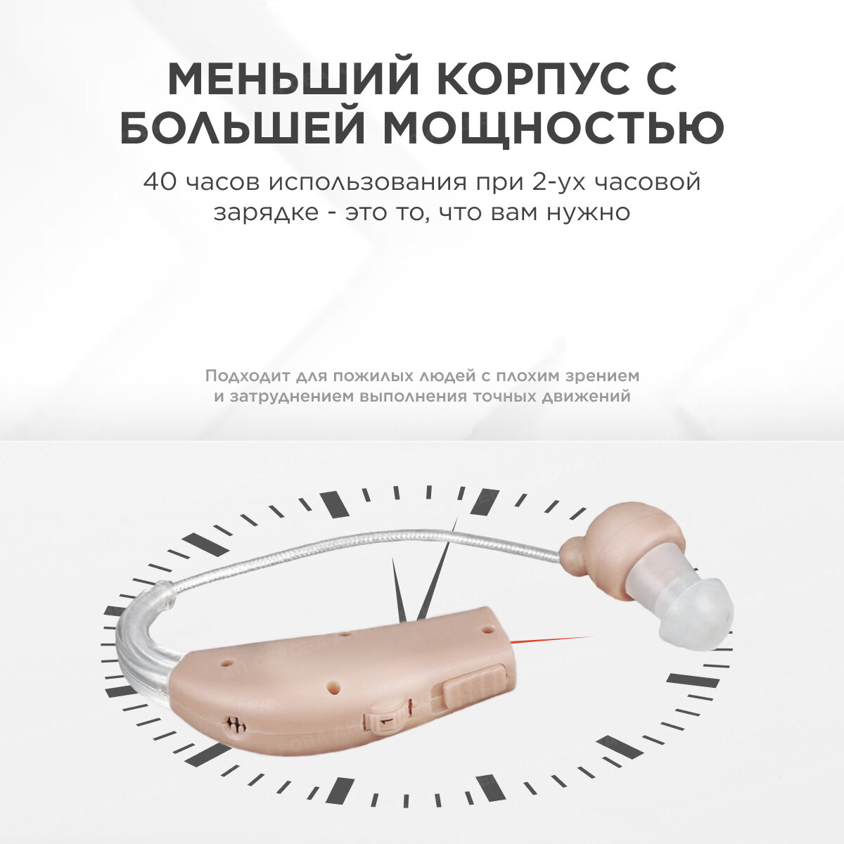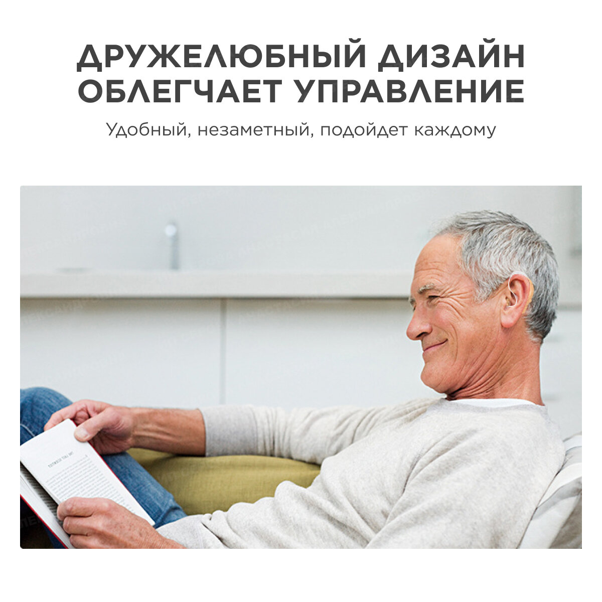 | Минусы: | Не самый миниатюрный, помогает только если потеря слуха незначительная, в других случаях нужен гораздо более серьезный и дорогой аппарат |