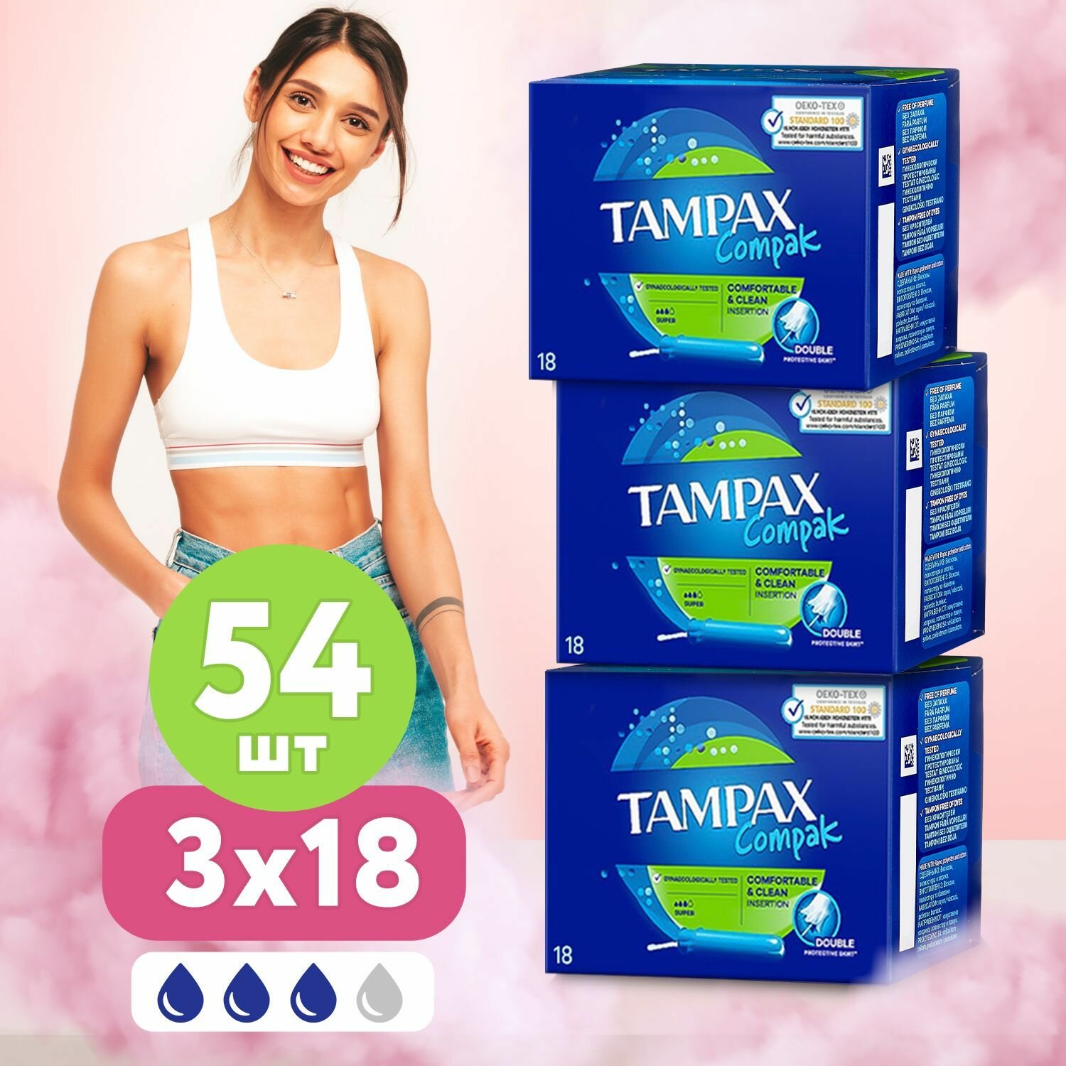 TAMPAX тампоны Compak Super с аппликатором, 3 капли, 32 шт. 2 упаковки