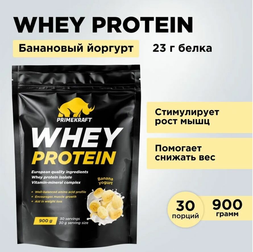 Сывороточный протеин Prime Kraft Whey Protein - 900 г, банановый йогурт