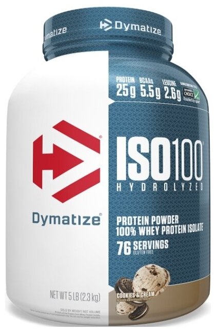 Dymatize, ISO100 гидролизованный, 100% изолят сывороточного белка, печенье со сливками, 5 фунтов (2,3 кг)