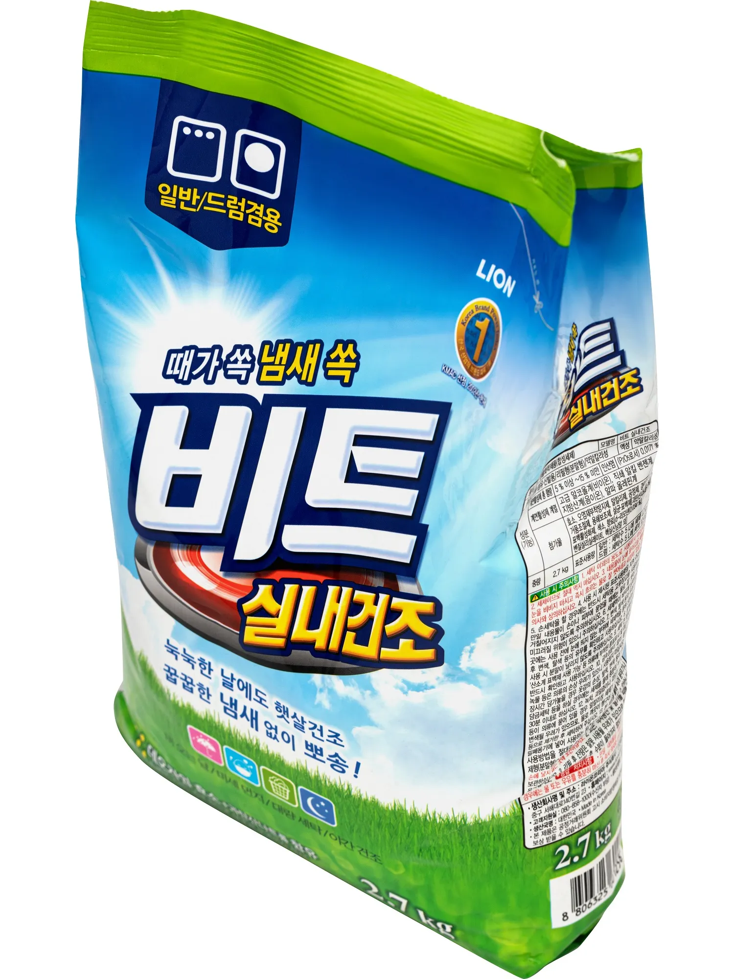 Lion Порошок стиральный концентрированный для ручной и автоматической стирки, Beat in door, сушка в помещении, 2,7 кг
