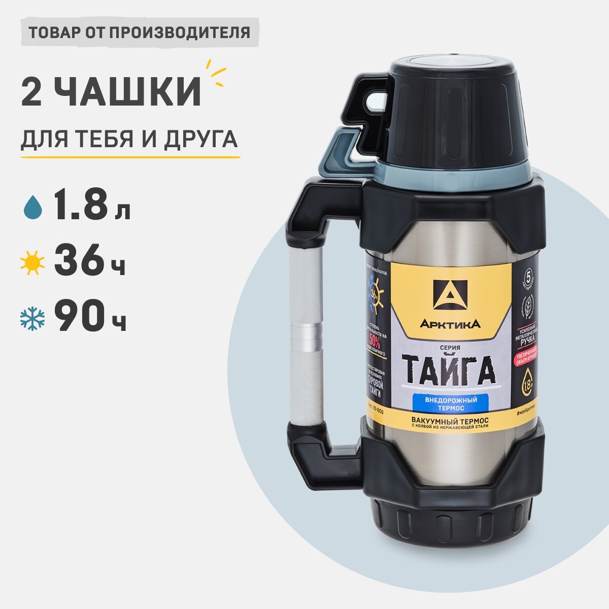 Купить Термос с ручкой туристический Тайга Арктика 1,8л 110-1800 с двумя чашками