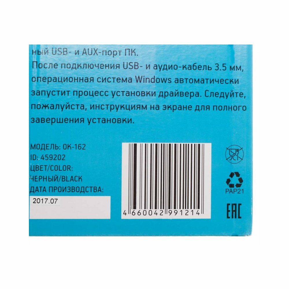 Колонки Oklick OK-162, 2.0, черный [459202]