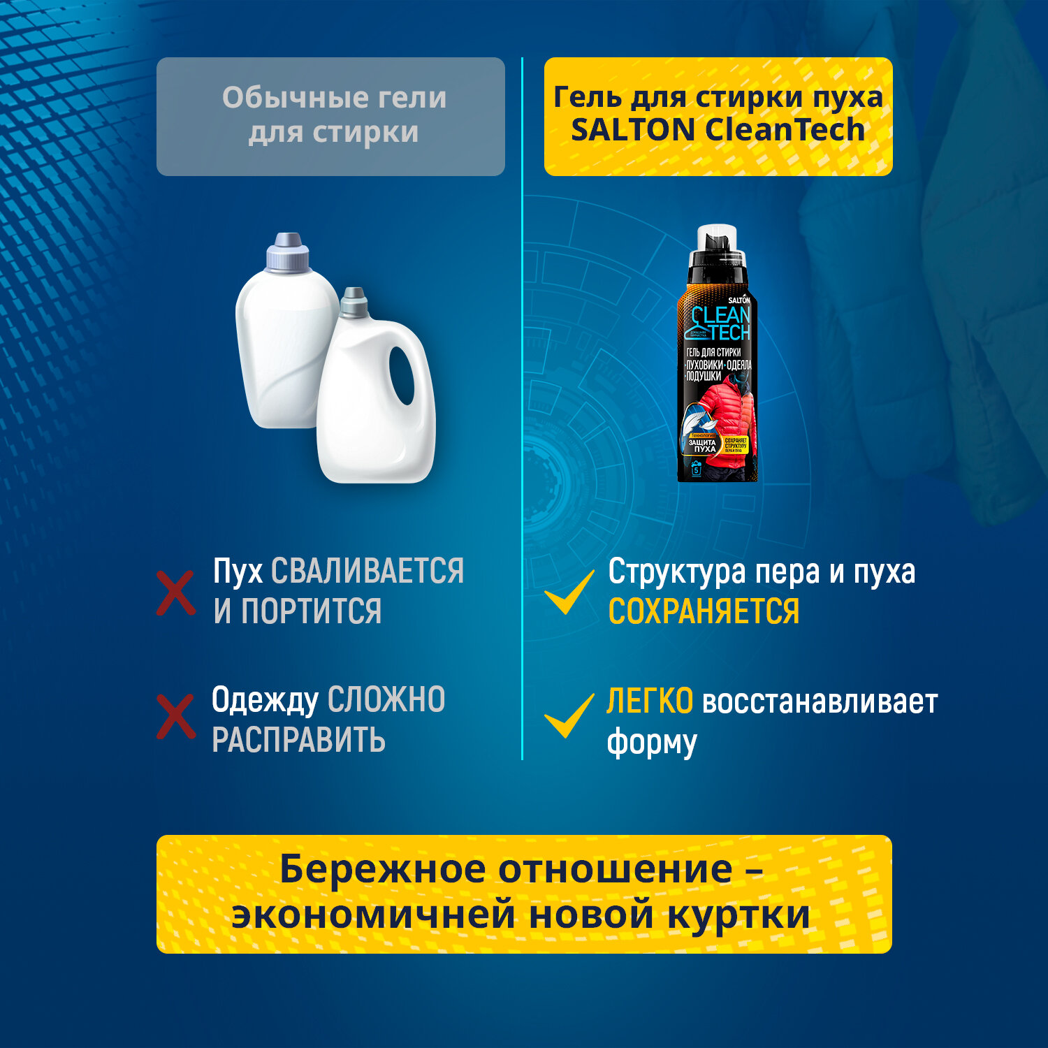 Купить Гель для стирки пуховиков, курток, одеял, подушек, синтепона и пера, средство, жидкий порошок Salton CleanTech, 250 мл