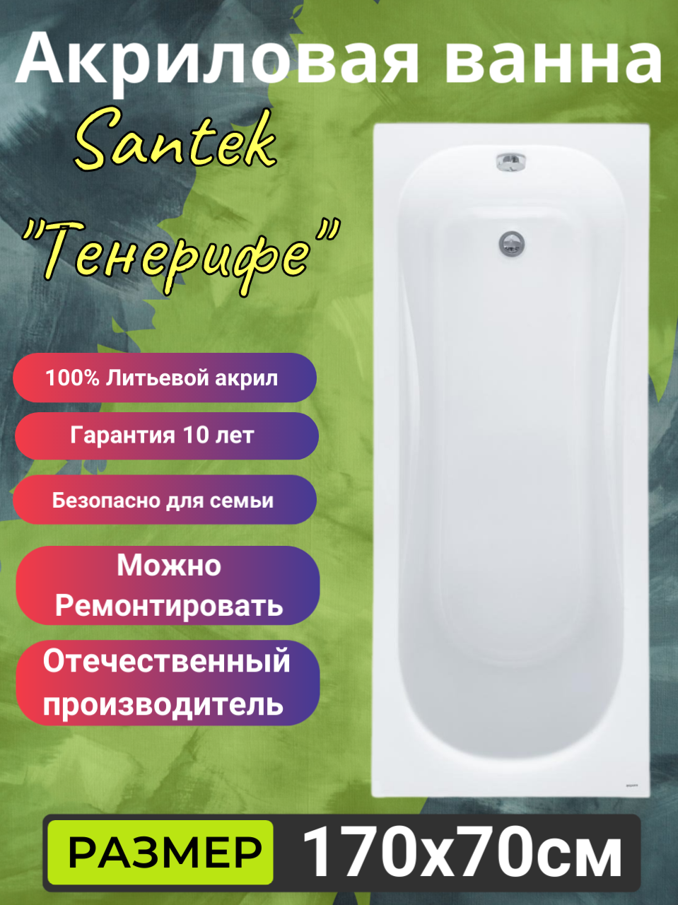 СохранитьАкриловая ванна Santek Тенерифе 170х70см, арт. 1WH302207 интересное: