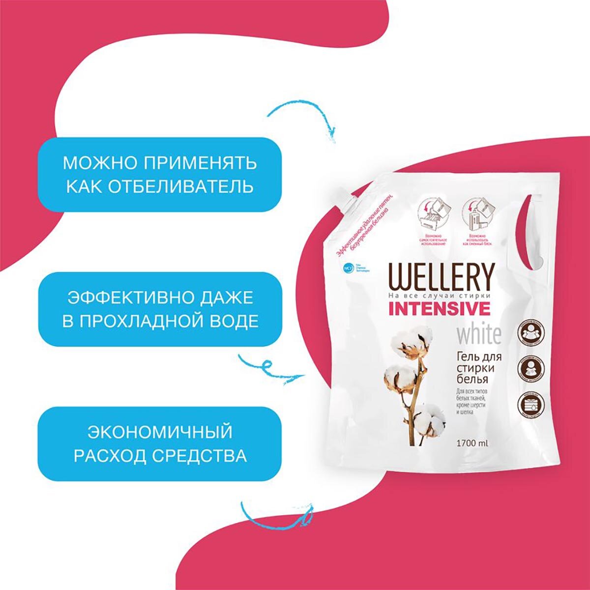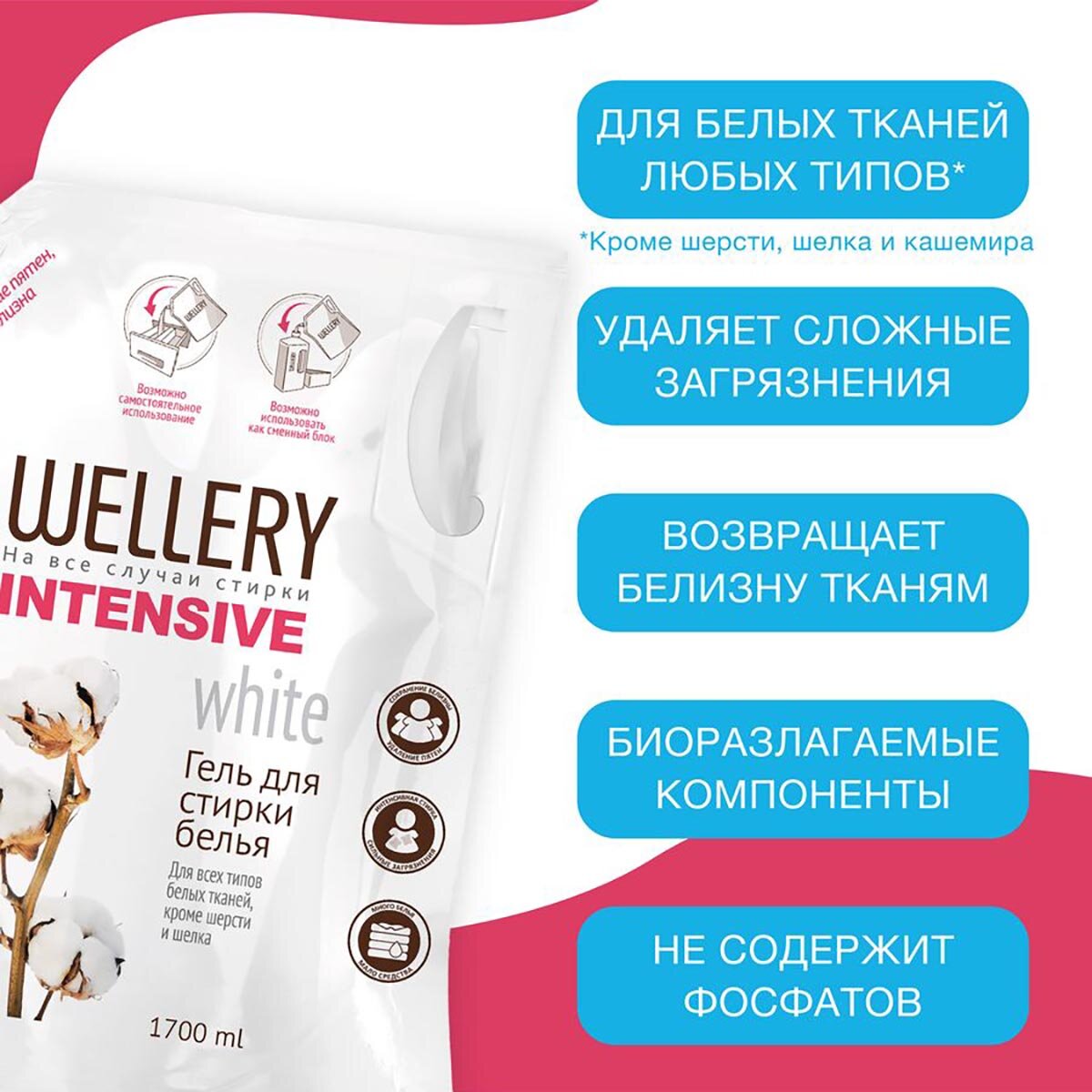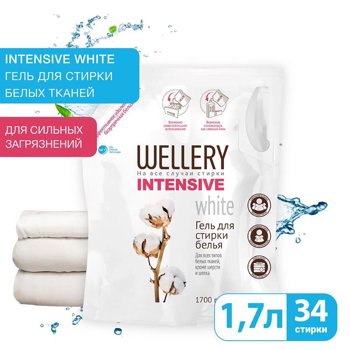 Гель для стирки Wellery Intensive white, 1.7 л, пакет