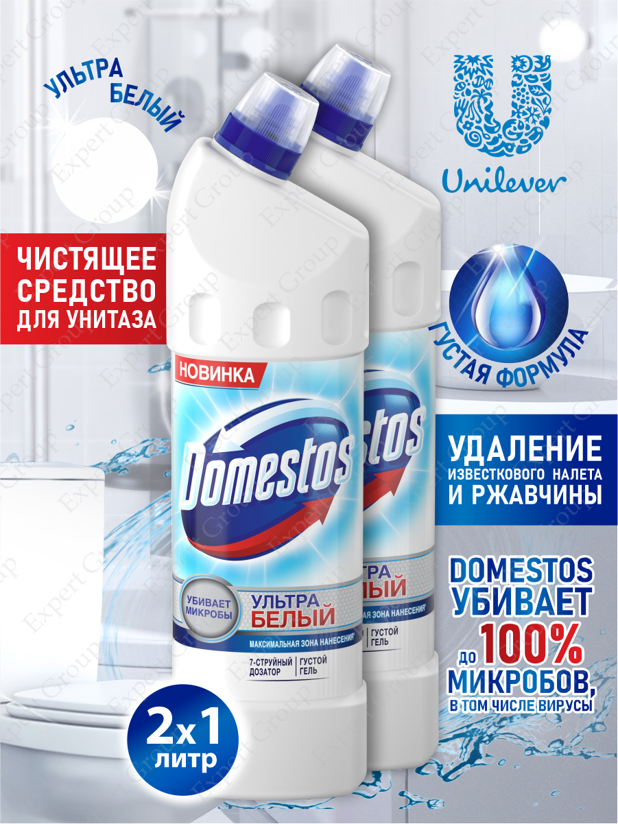 Купить Средство для туалета Domestos "Ультра белый", гель, 1л - 2 шт.
