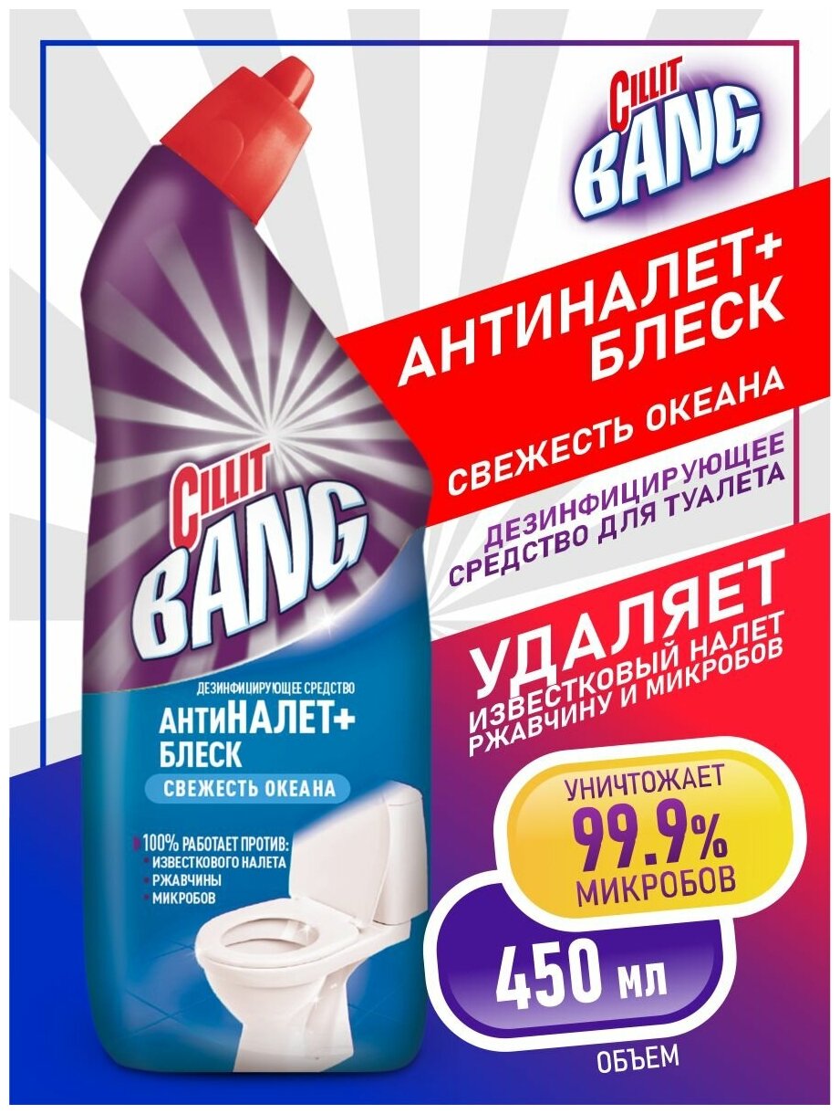 Дезинфицирующее средство Cillit Bang Свежесть океана, Антиналет и Блеск, для туалета, 450 мл