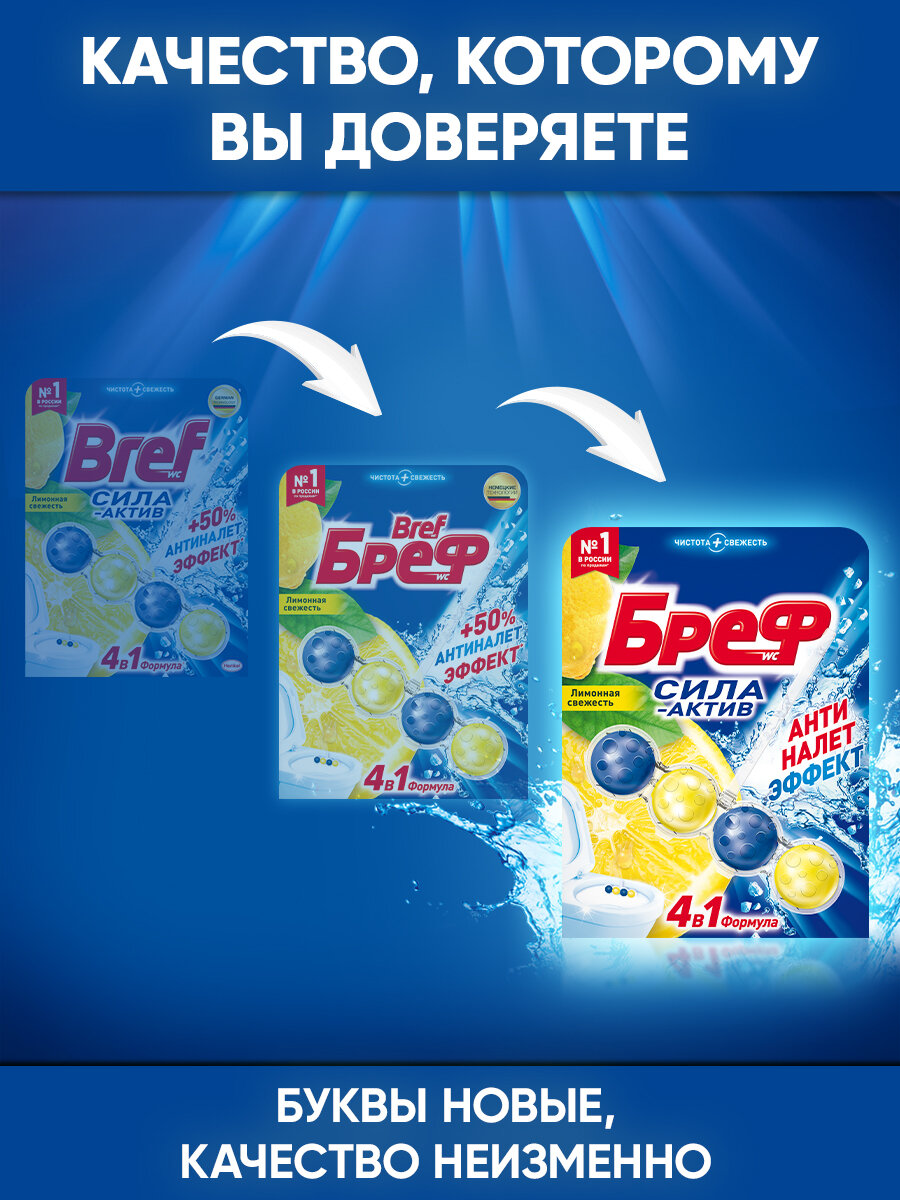 Блок для унитаза Bref Сила Актив "Лимонная свежесть", 4 шт х 50 гр