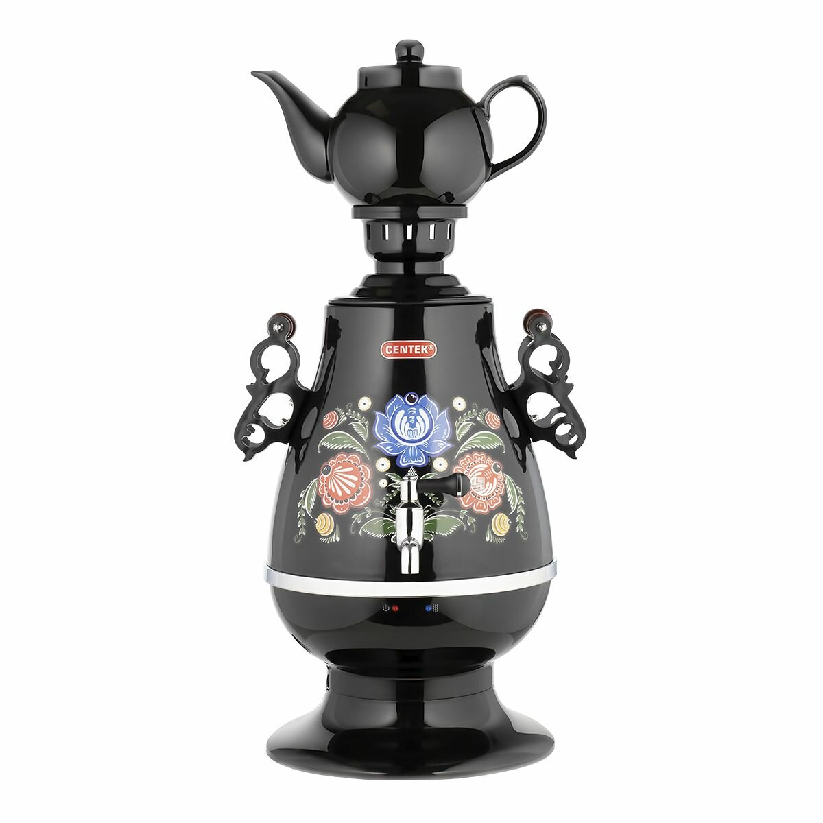 Самовар Centek CT-0091 B (черн+рисунок), 4.0л, 2300Вт, поддерж.t + LED индикатор, керам заварник