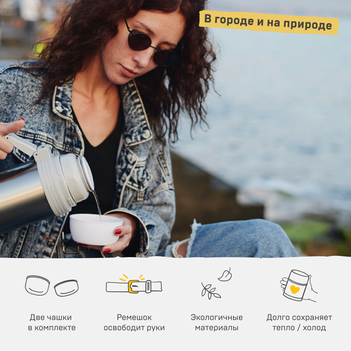 Термос для еды и напитков 1,5 л Арктика с ручкой, ремнем и дополнительной чашкой