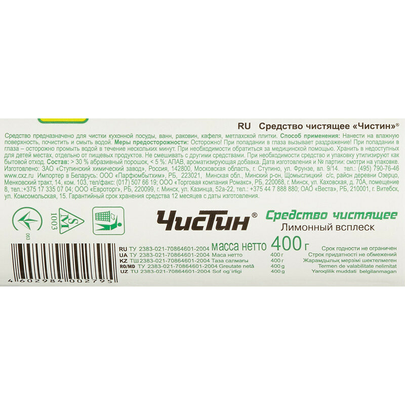 Чистящее средство 400г чистин "Лимонный всплеск", порошок, ш/к 02795