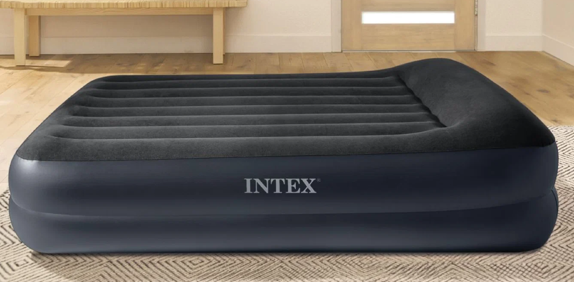 Надувная кровать Intex Pillow Rest Raised Bed (Queen), 152х203х42 см, с подголовником и встроенным насосом 220V, 64124