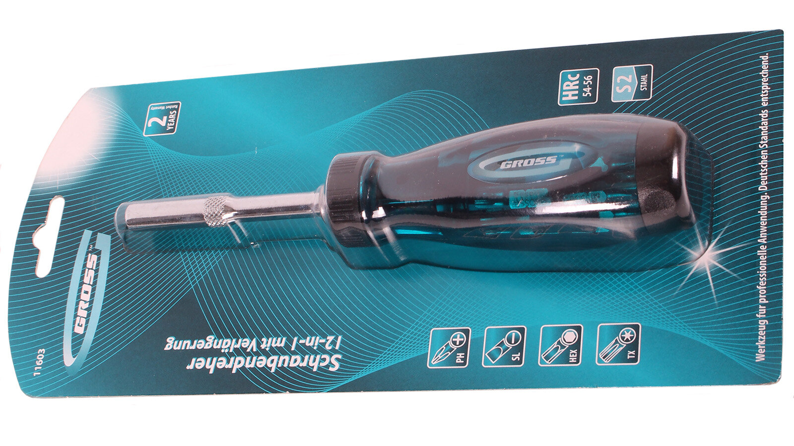 Купить Отвертка реверсивная GROSS с набором насадок 12 предметов