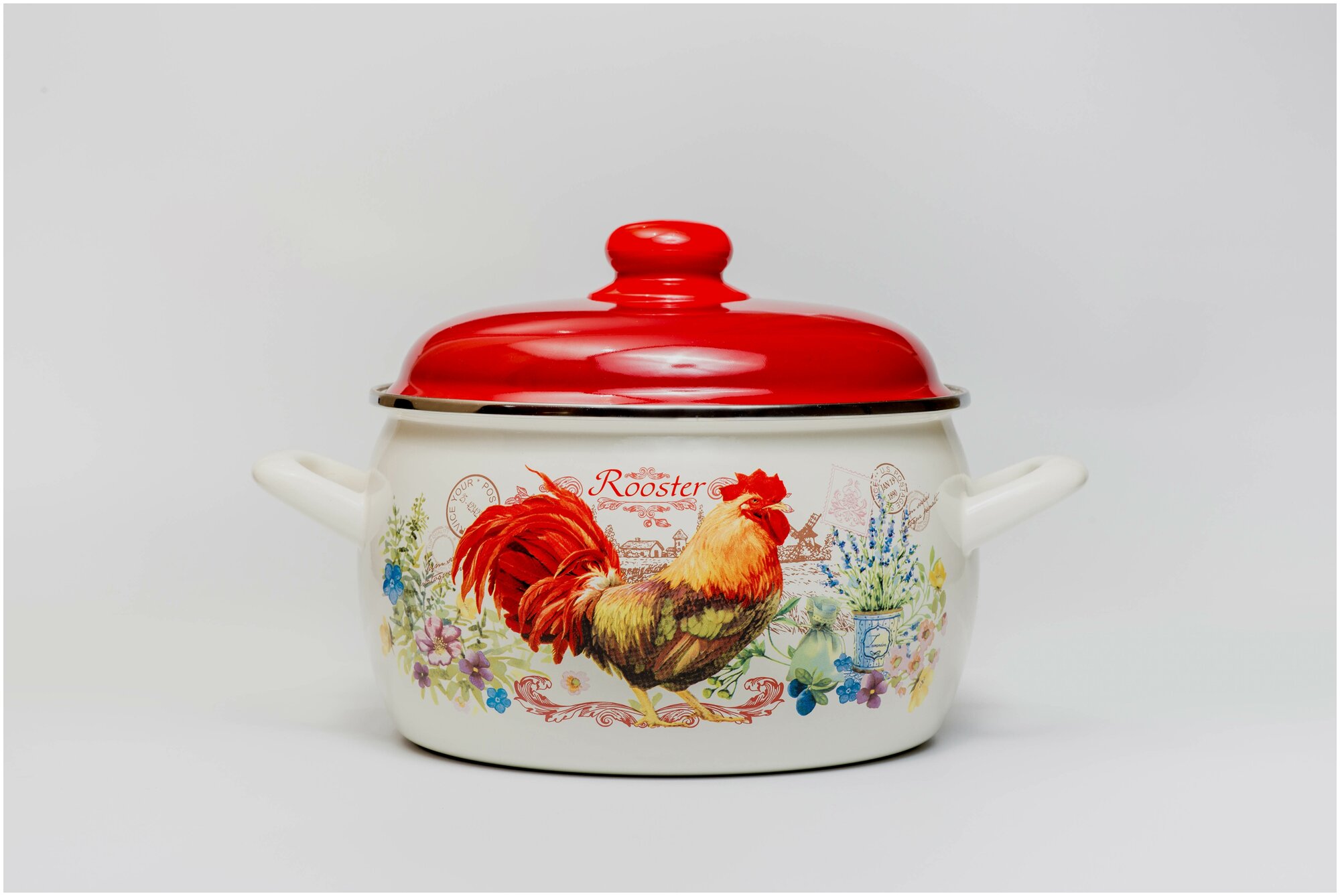 Кастрюля эмалированная Metrot Золотой петушок с крышкой, 2,2 л