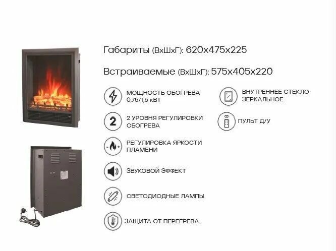 Электроочаг RealFlame Eugene, пульт ДУ, звуковой эффект, обогрев (электрический очаг) интересное: