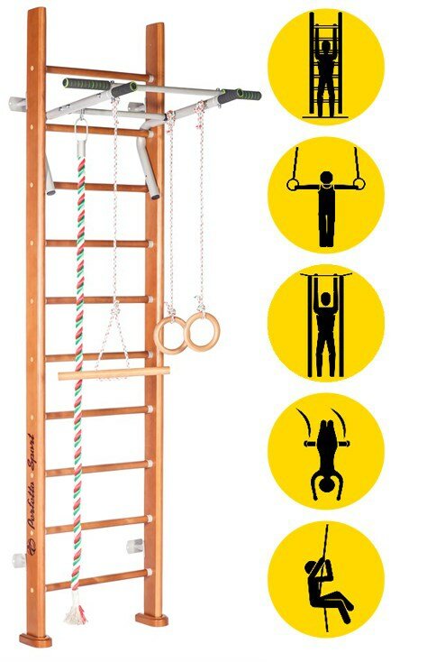 | Плюсы: | Отличное качество. Дерево обработано,ступеньки обжаты металлом. . Брал в полной комплектации, довольны все домочадцы. Крепление к стене очень массивные. |