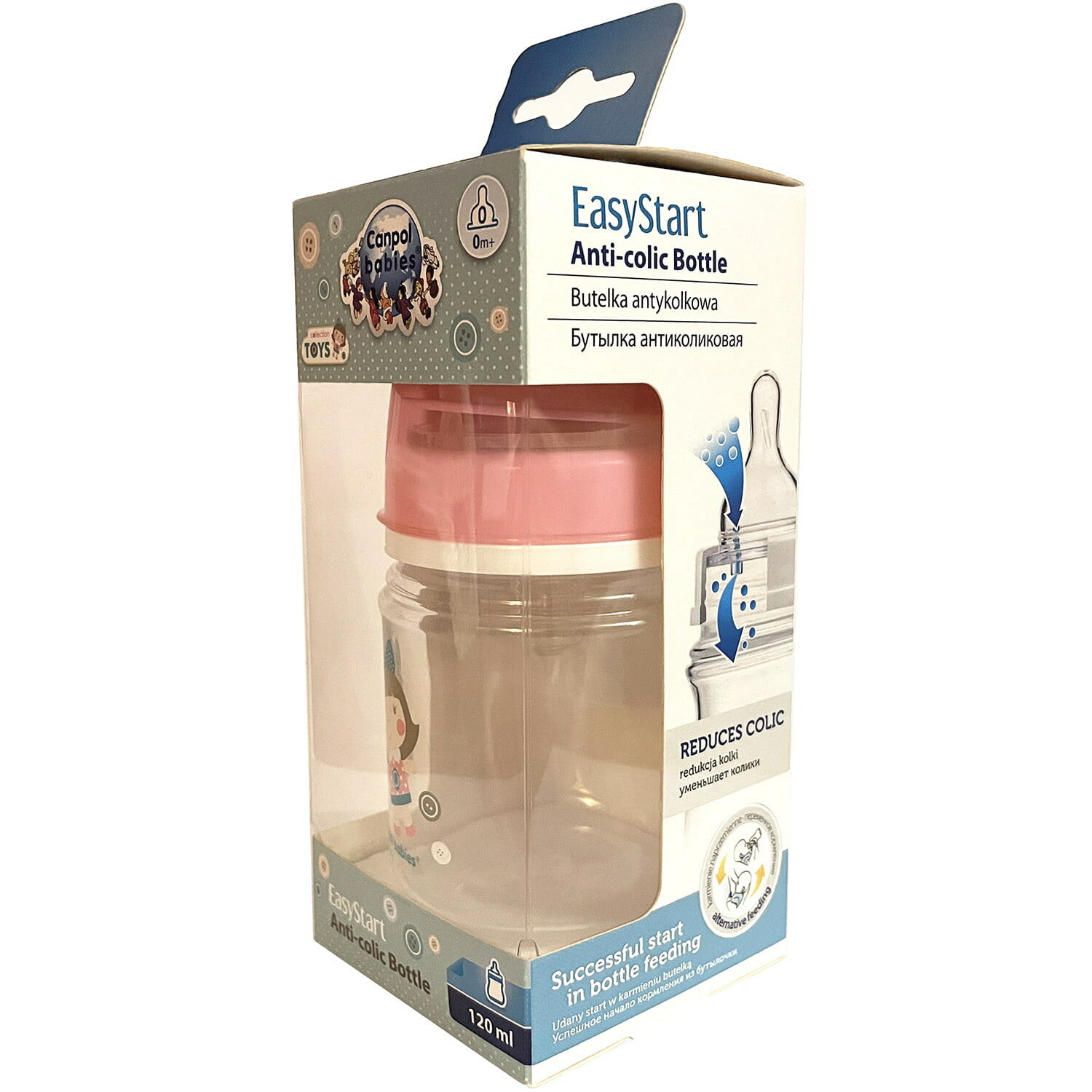 Купить Бутылочка Canpol babies EasyStart 120 мл для кормления с широким горлышком антиколиковая, розовая, 0+