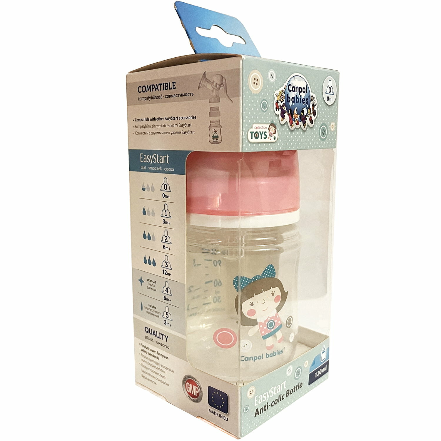 Canpol babies 250989197 Бутылочка PP EasyStart с шир. горлышком антикол, 120 мл, 0+ Toys, (голубой)