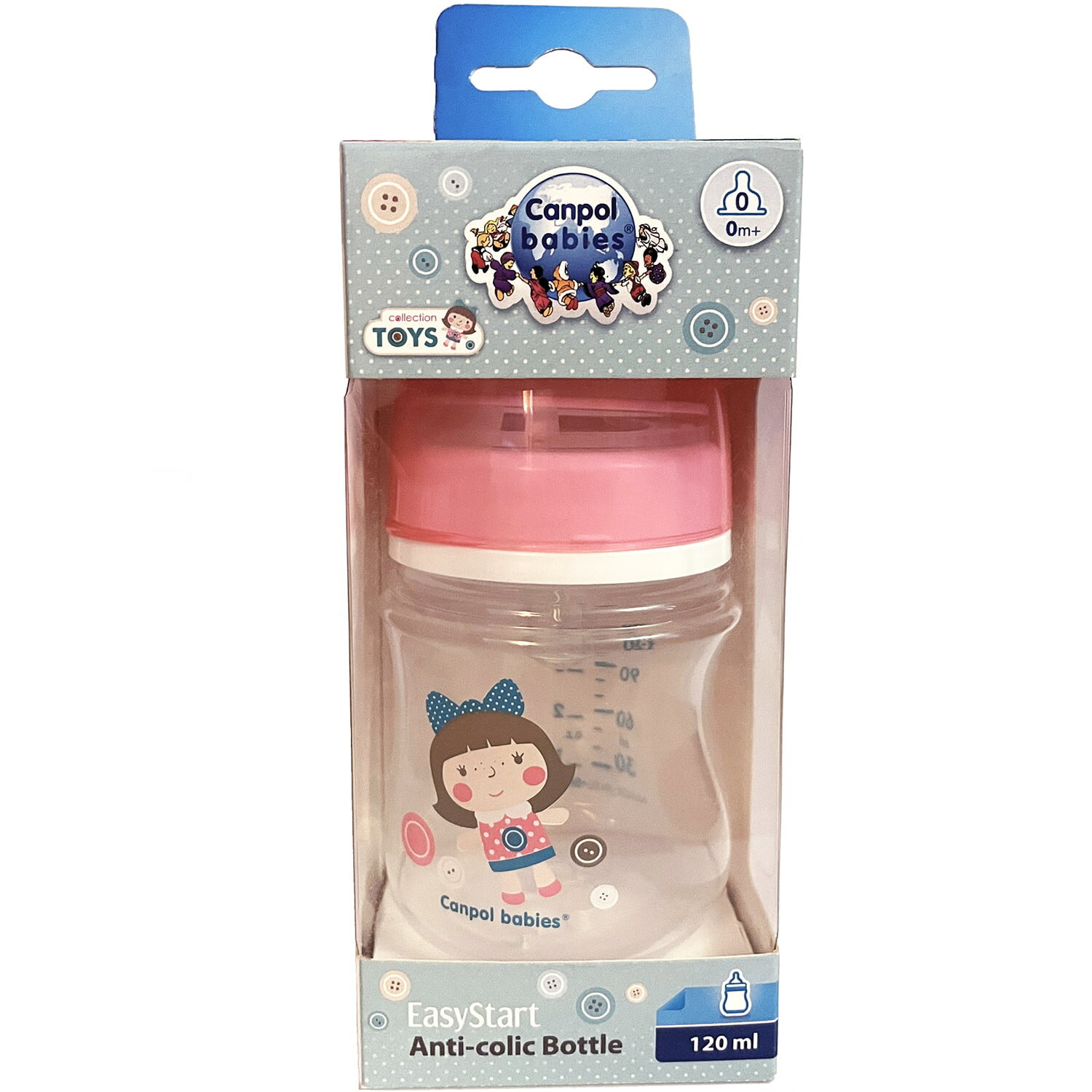 Canpol babies 250989196 Бутылочка PP EasyStart с шир. горлышком антикол, 120 мл, 0+ Toys, (розовый)
