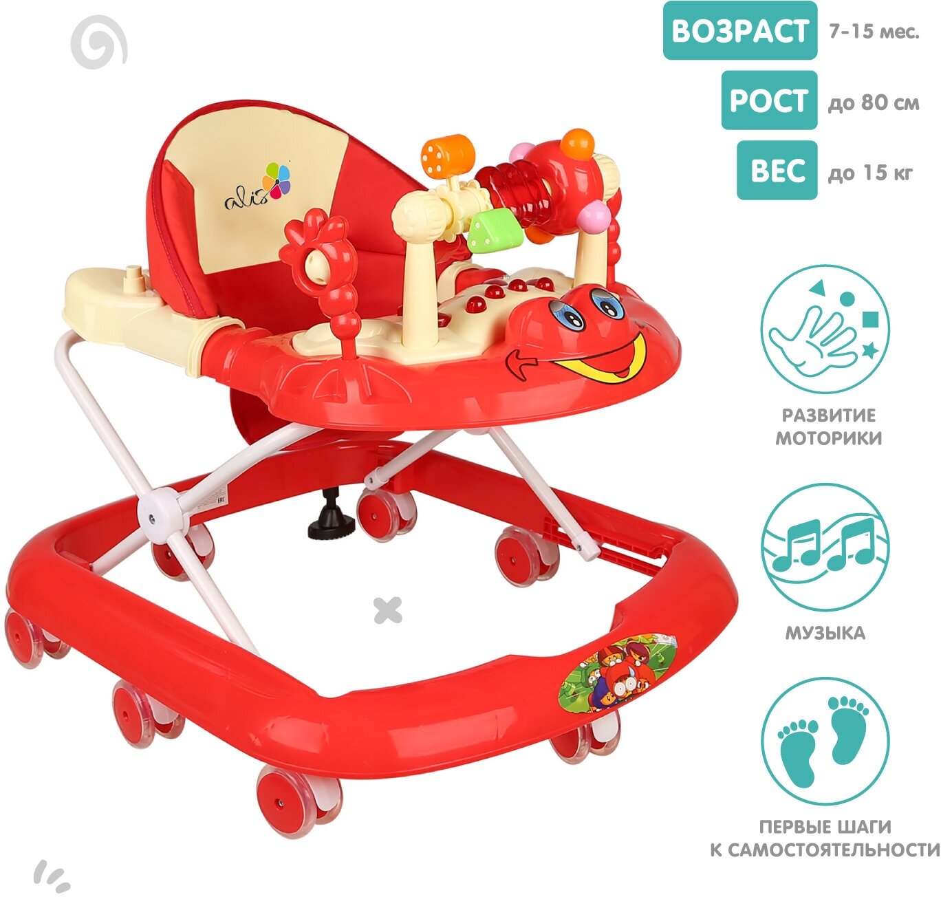Ходунки Alis "Игротека" (красный), музыкальная панель SR528