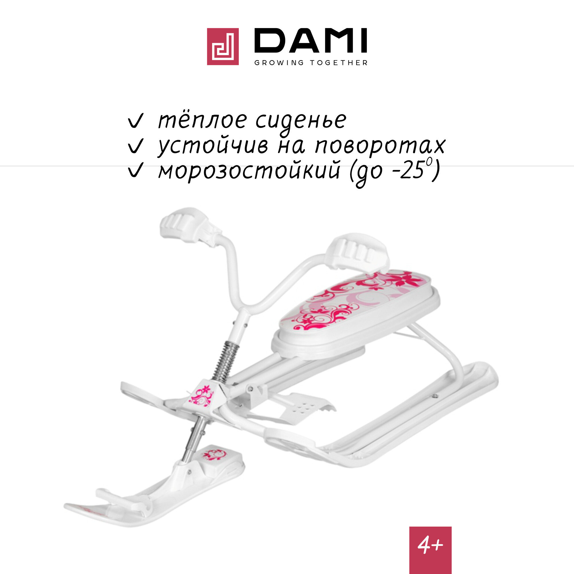 Купить Снегокат DAMI / Дэми детский с безопасным управлением, мягкое сиденье для двоих, нагрузка до 120 кг, Дольче Вита-19