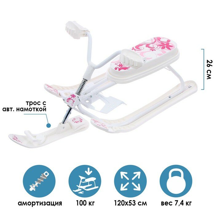 Снегокат Ника-SNOWPATROL (SNOWPATROL 2) рама белая со спинкой, трос авт. нам, велоруль