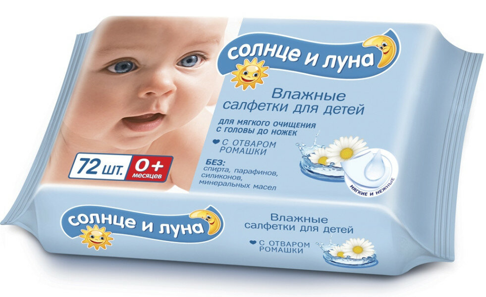 Влажные салфетки Солнце и Луна Для Детей с Отваром Ромашки 72 шт