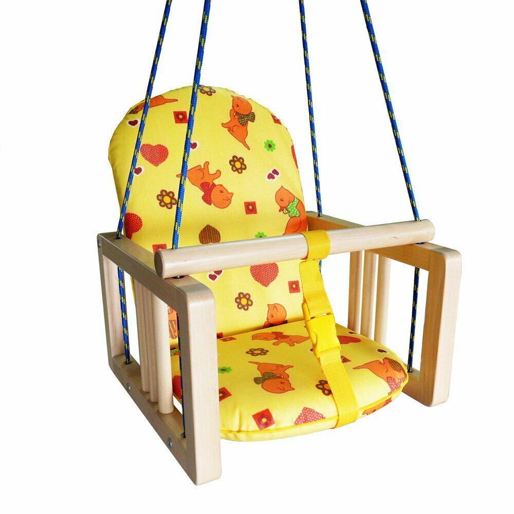 качели подвесные размещение дома/на улице для детей от 1 года материал: дерево наличие спинки, ограничивающий бортик |