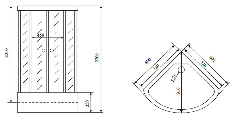 Душевой уголок Black&White Stellar Wind S101 800х800