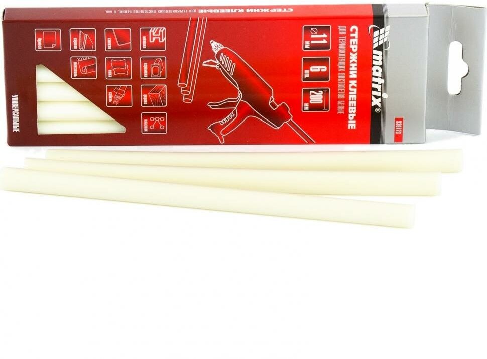 Стержни для клеевого пистолета matrix белые 11мм l200мм 6шт 930723