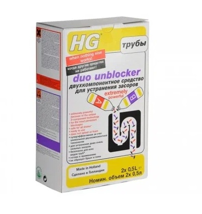 HG Средство для устранения засоров в трубах двойного действия