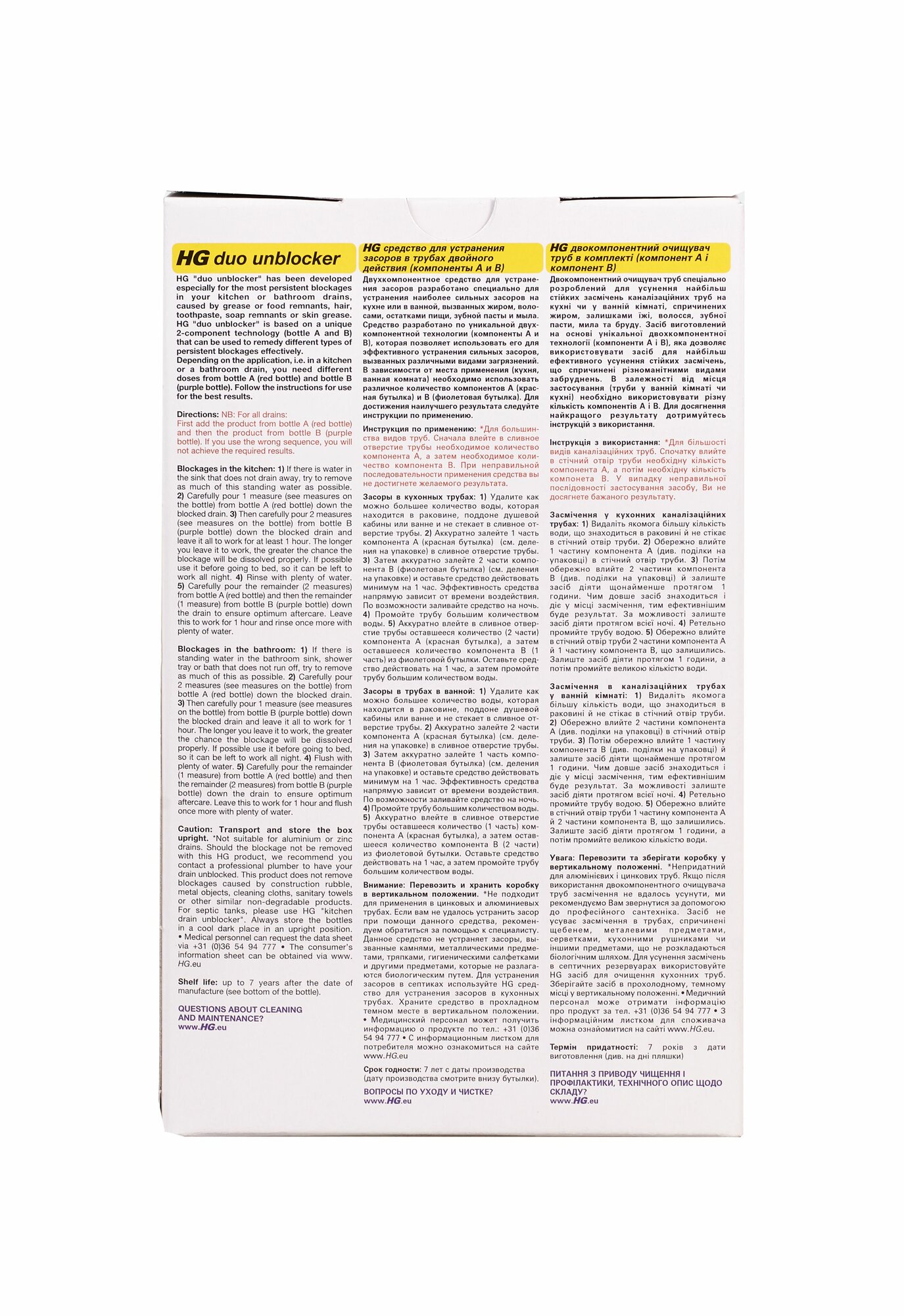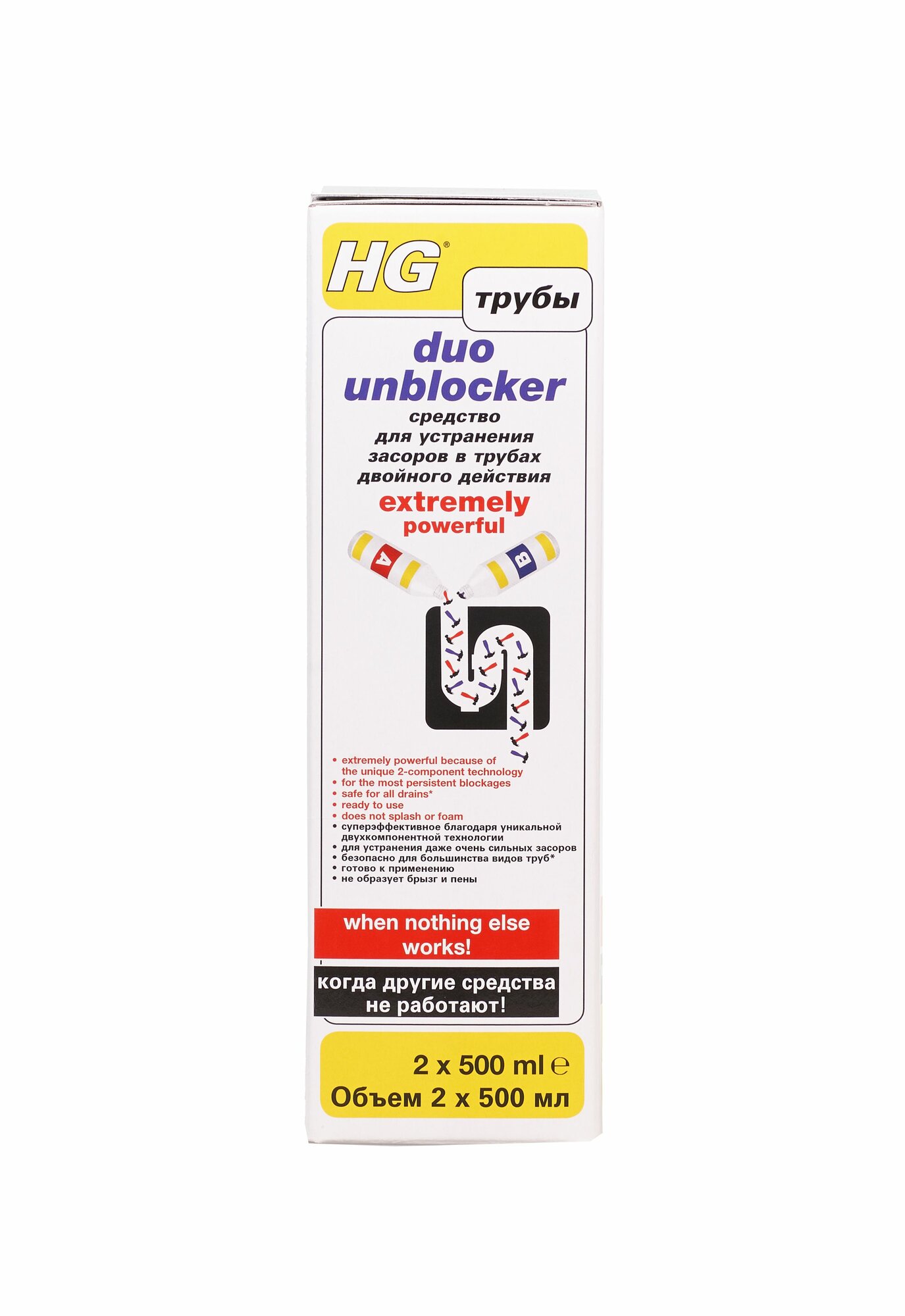 Купить HG Средство для устранения засоров в трубах двойного действия (компоненты A и B) 2 х 0,5 л