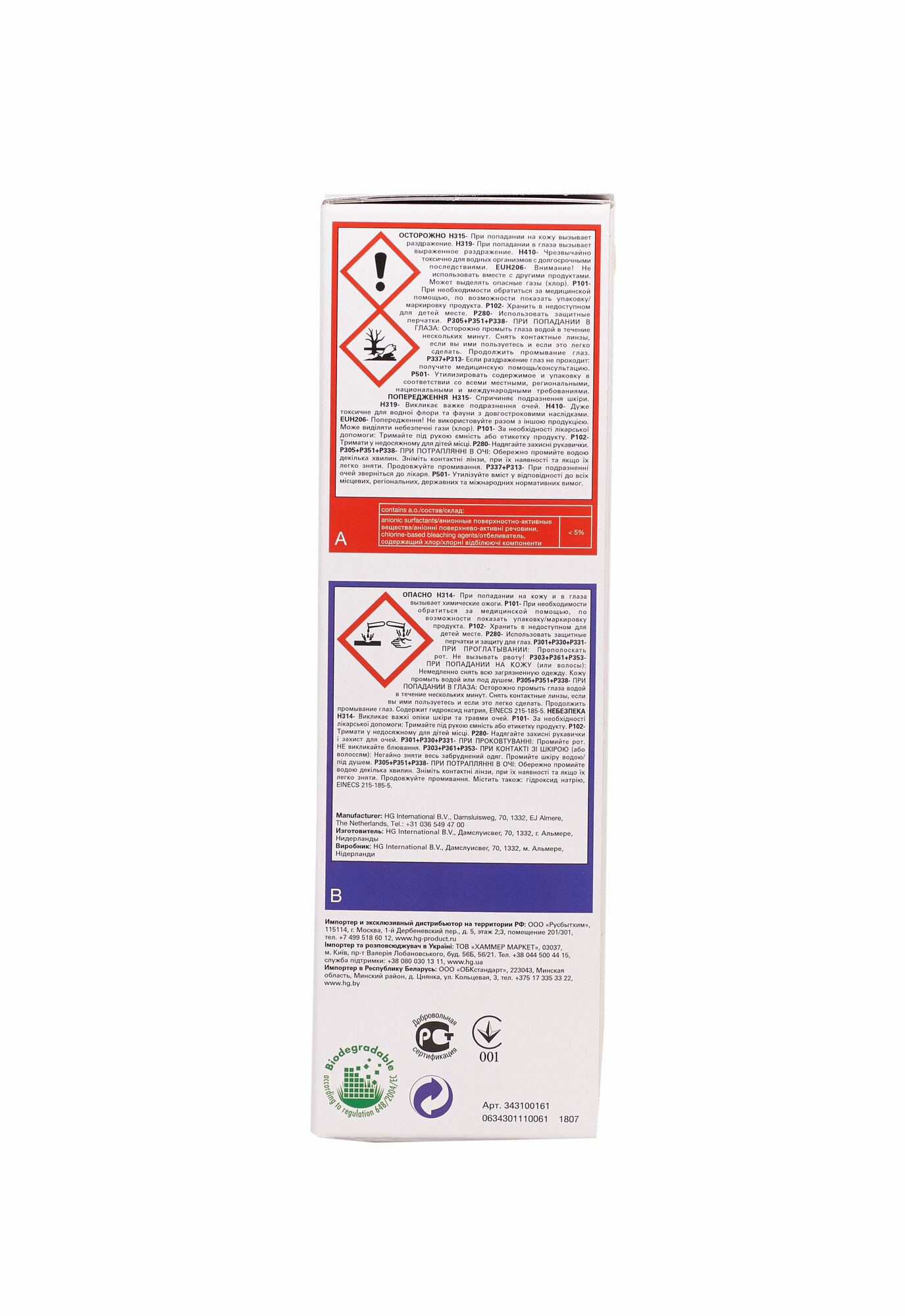 HG Средство для устранения засоров в трубах двойного действия 2х0,5л 343100161 .