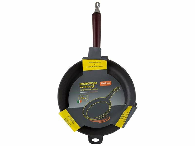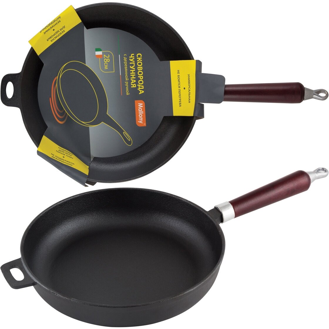 Сковорода Mallony чугунная 28 см, деревянная ручка