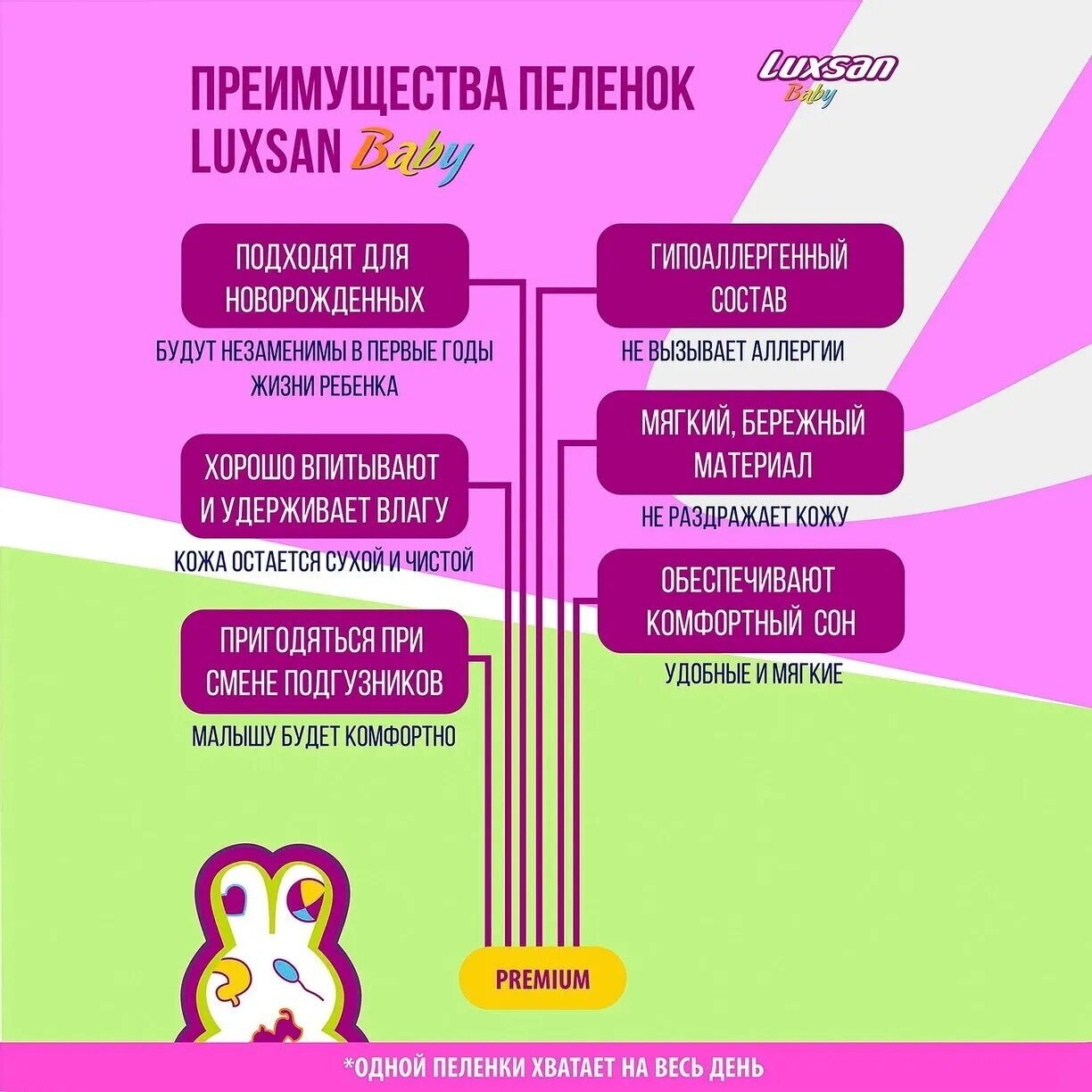 Купить Пеленки одноразовые детские Luxsan Baby PREMIUM 60х60, 20 шт.