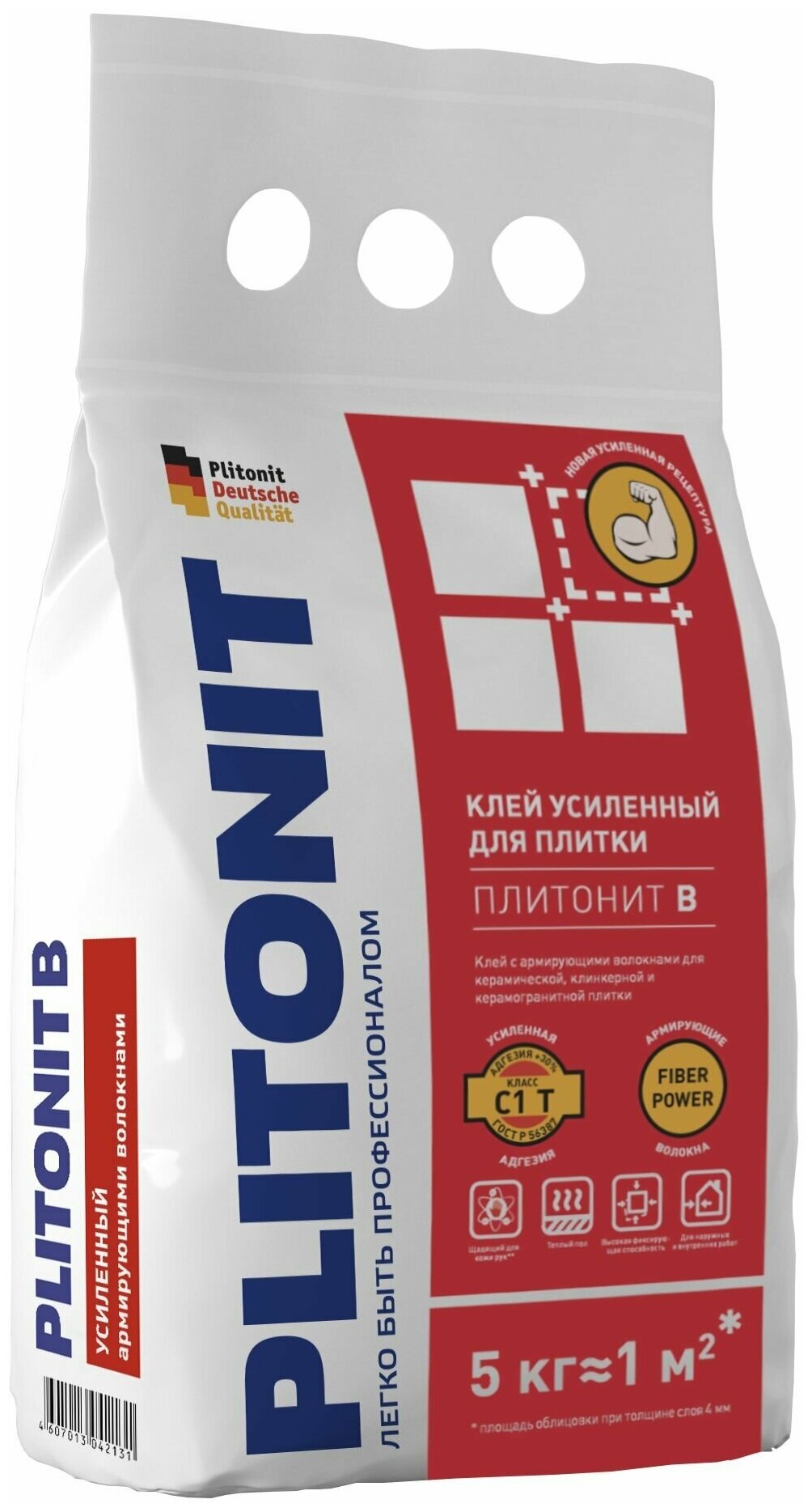 Купить Плитонит В клей Усиленный плиточный для наруж/внутр работ (5кг)