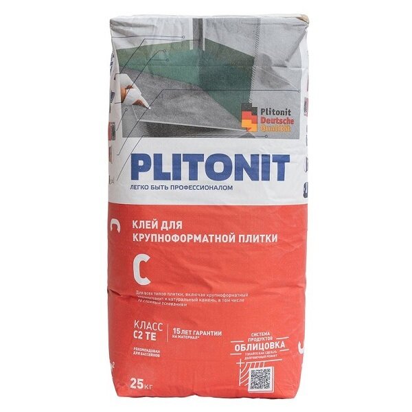 Клей для плитки PLITONIT С С2ТЕ для облицовки сложных поверхностей всеми видами плитки, 25 кг