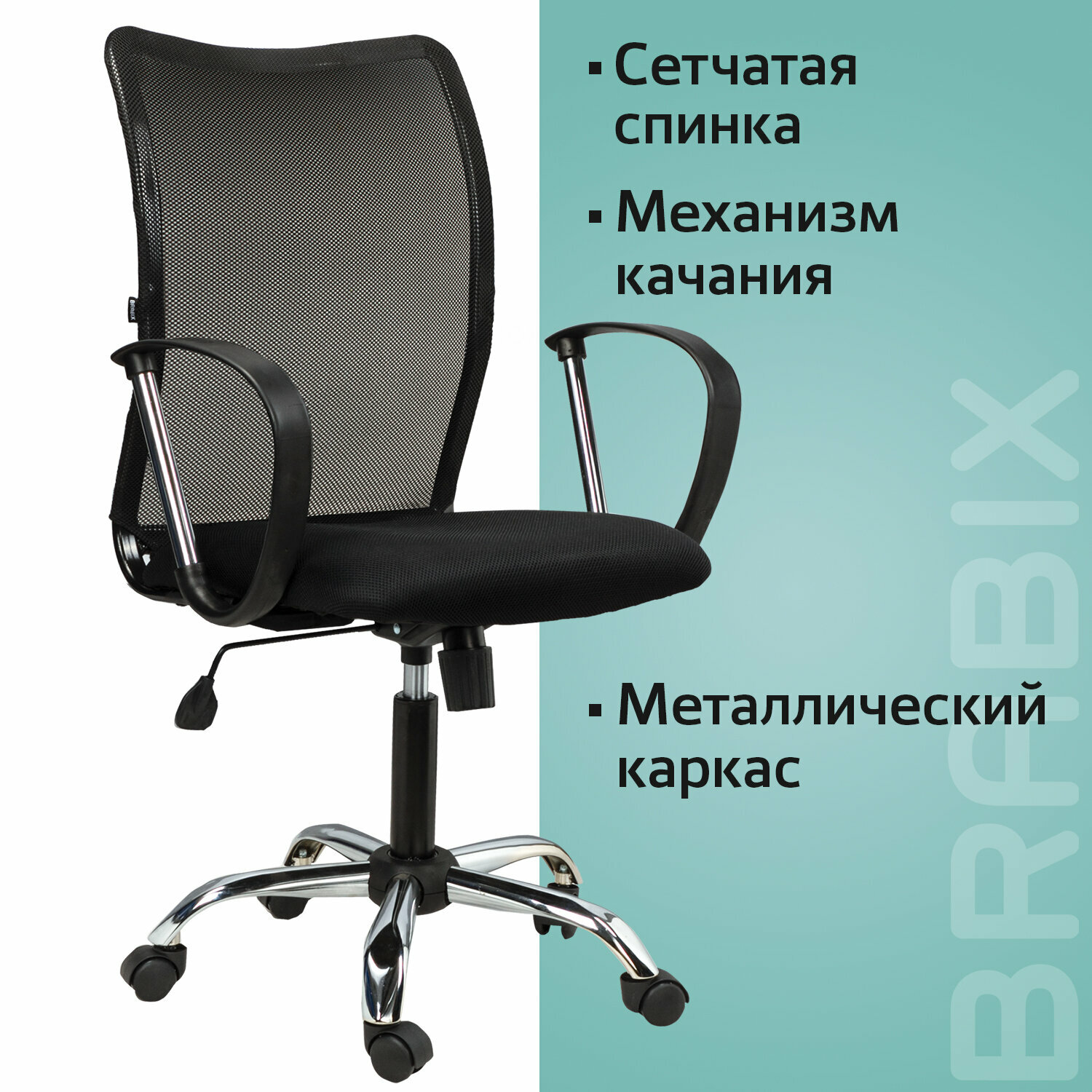 Кресло Brabix "Spring mg-308", с подлокотниками, хром, ткань черная (531403)