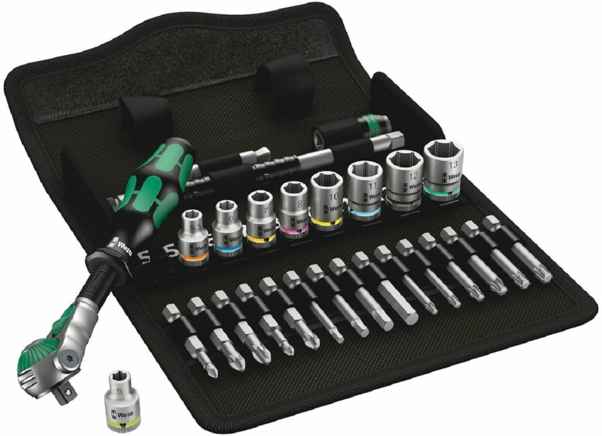 Набор бит и торцевых головок Wera 004016, 28 предм., черный/зеленый