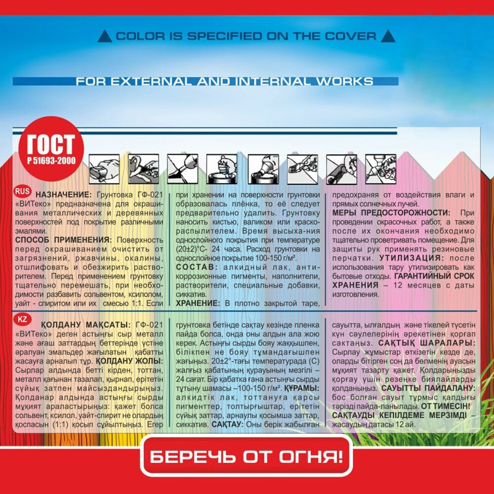 Грунтовка ГФ-021,антикоррозийная 0,8 кг,(светло-серая),ООО"ВИТеко"